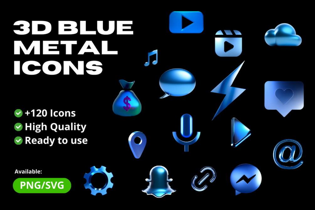 Enhance your digital projects with our superb collection of metallic 3D icons! Crafted with meticulous attention to detail, these icons add a touch of sophistication and professionalism to any design or interface.